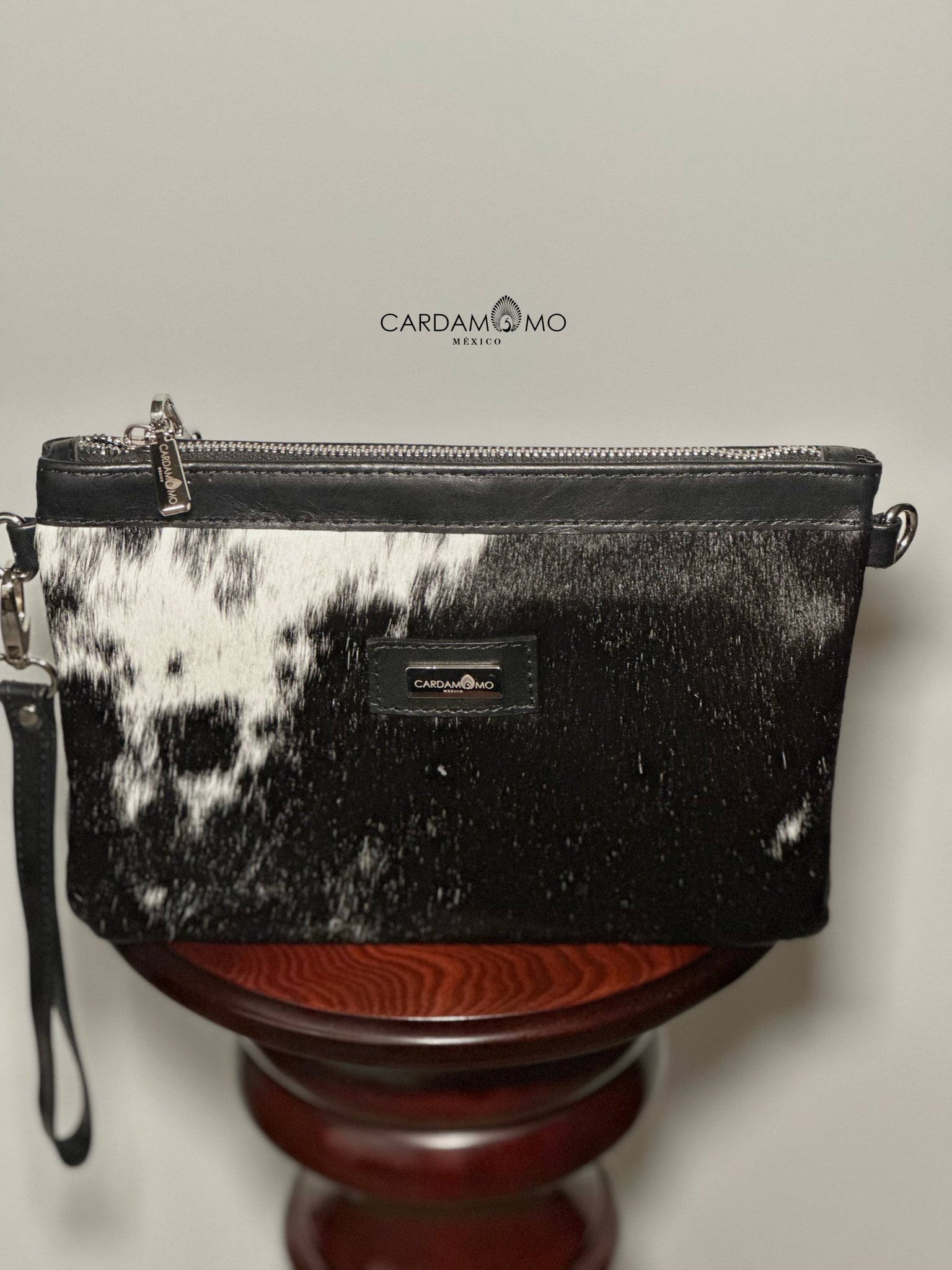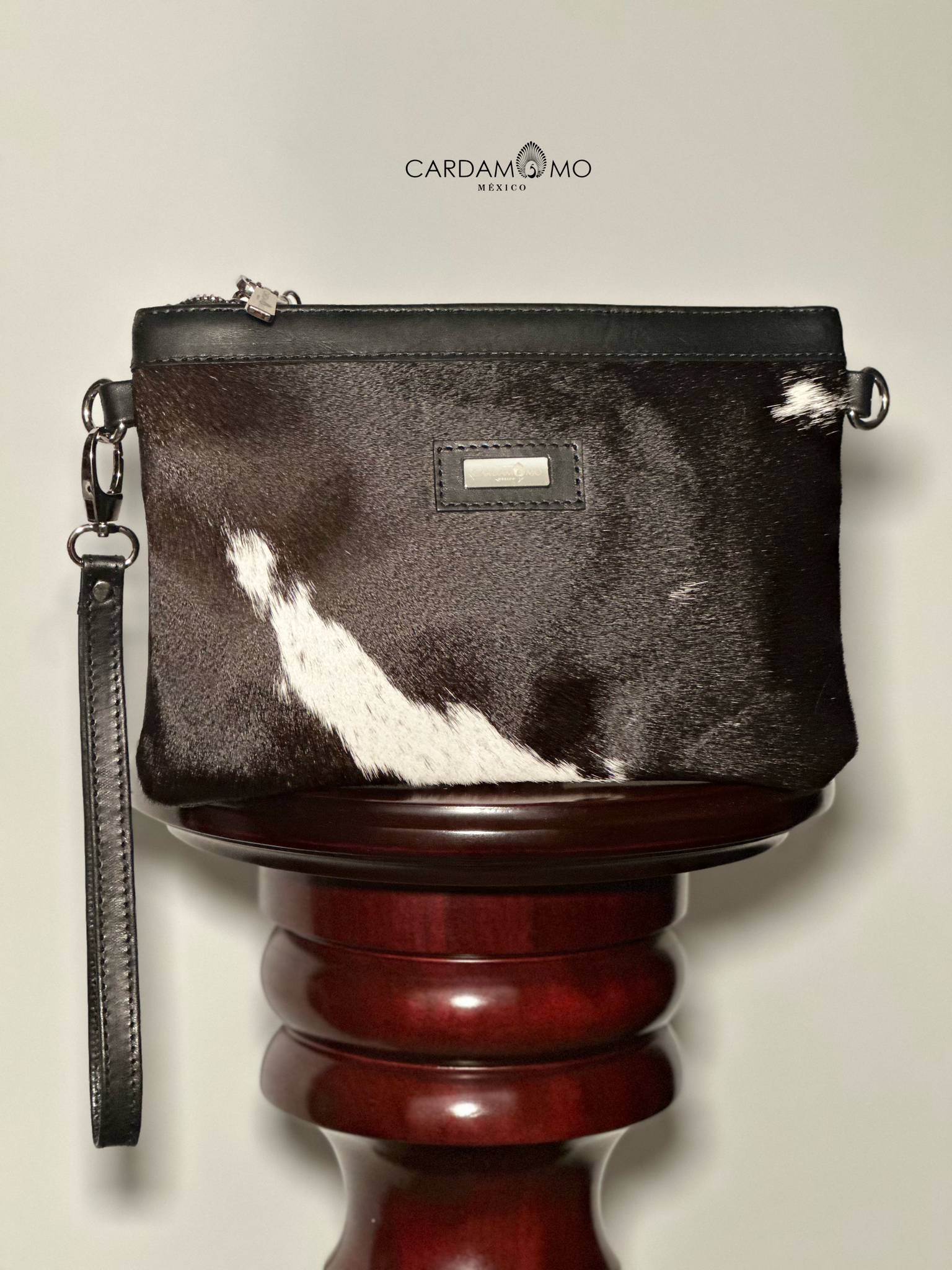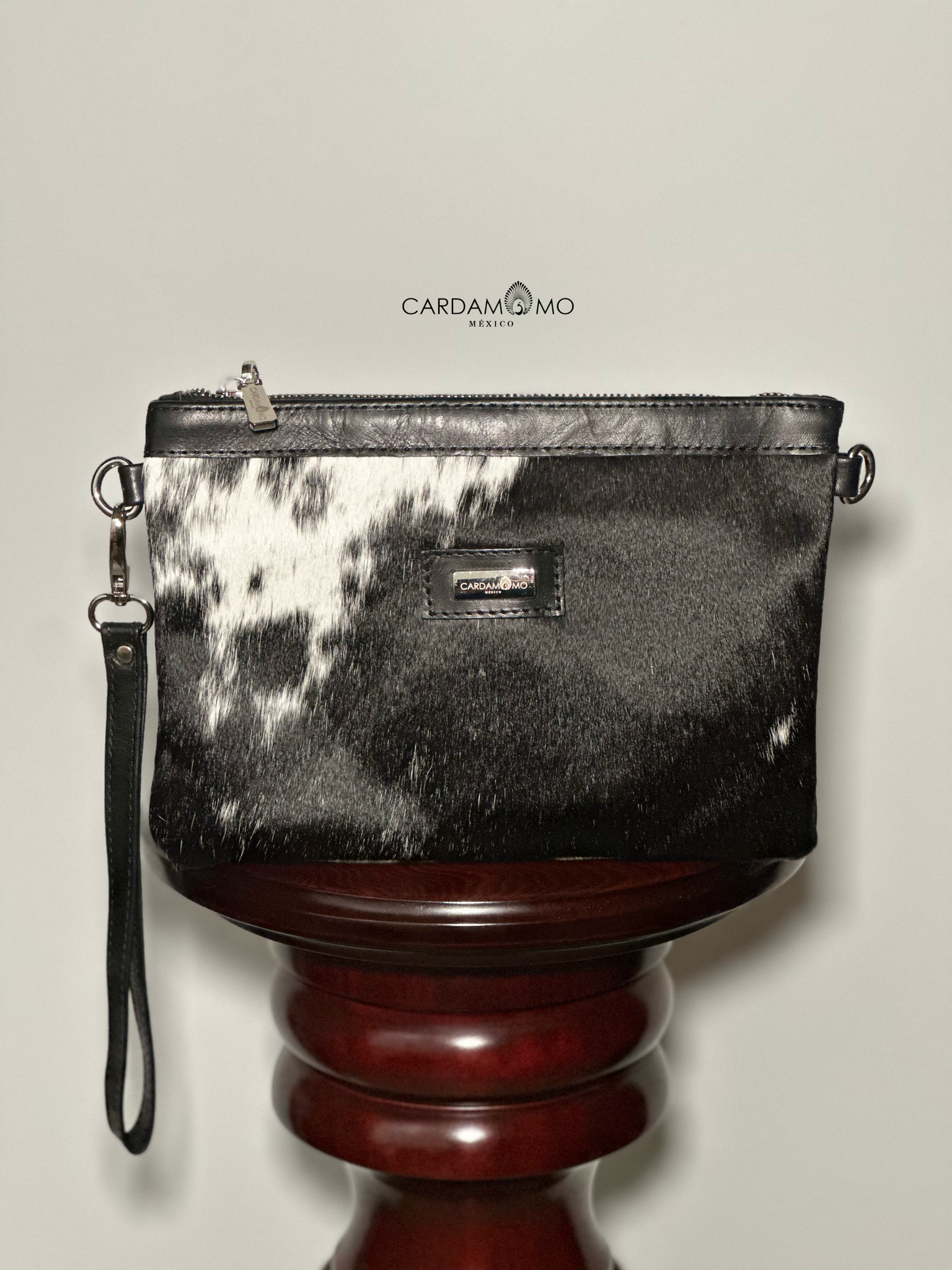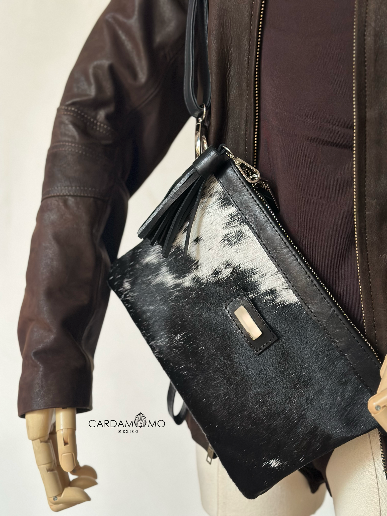 Elaborado en cuero vacuno de alta calidad, conservando el pelo natural de vaca en acabado Cowprint. Este material no solo aporta un diseño único e irrepetible en cada pieza, sino que también garantiza resistencia, durabilidad y un estilo sofisticado con esencia vaquera.