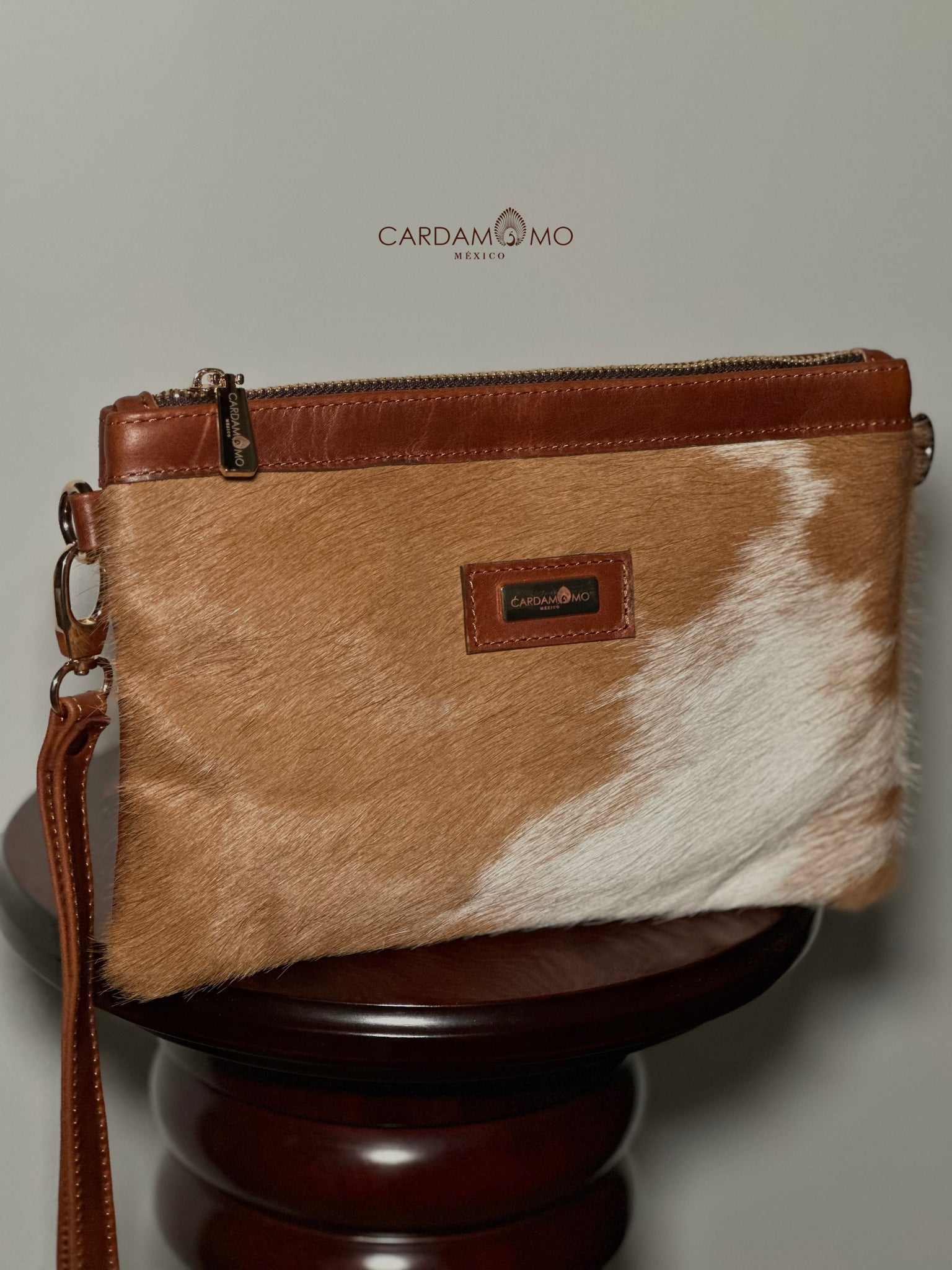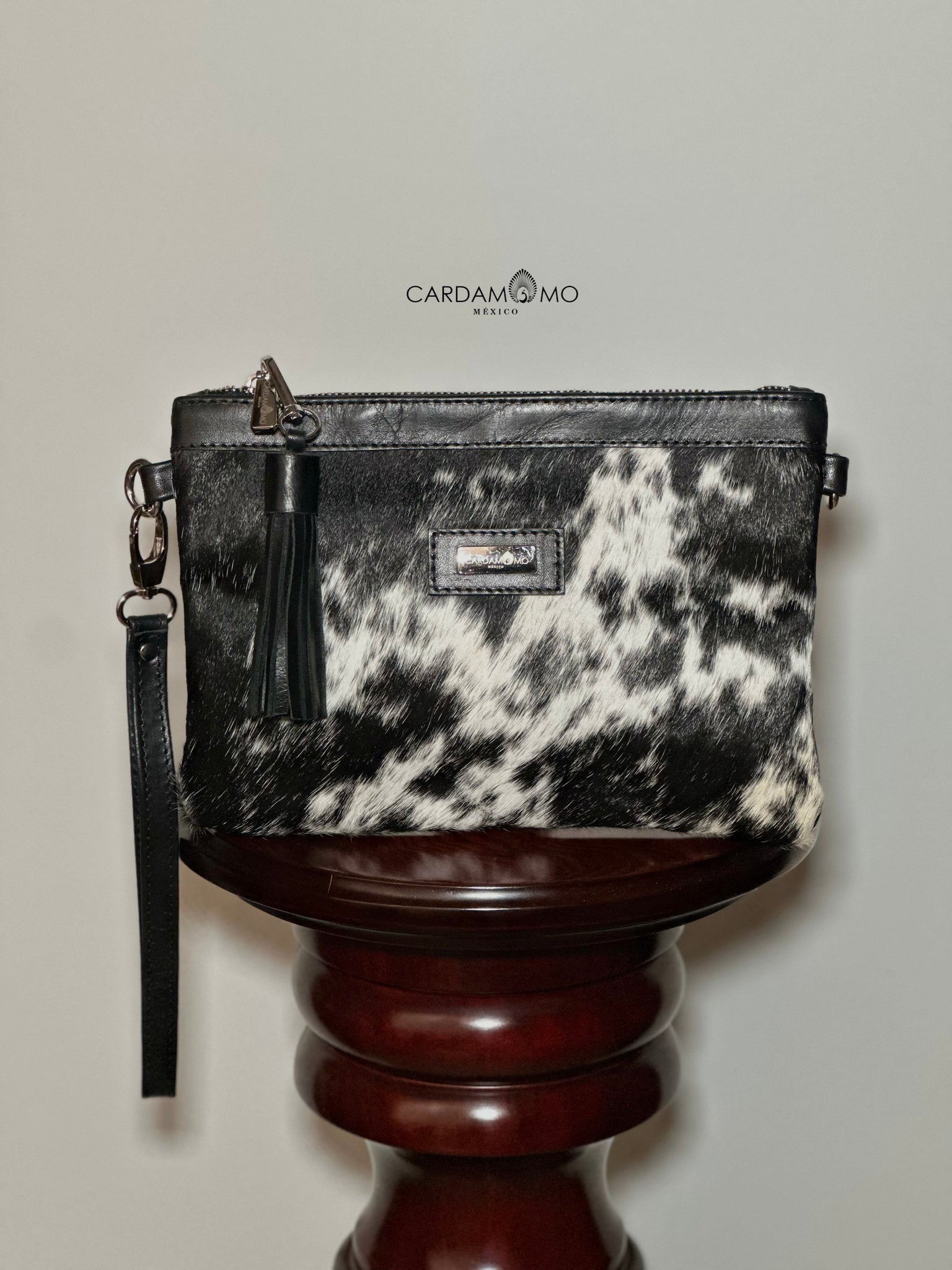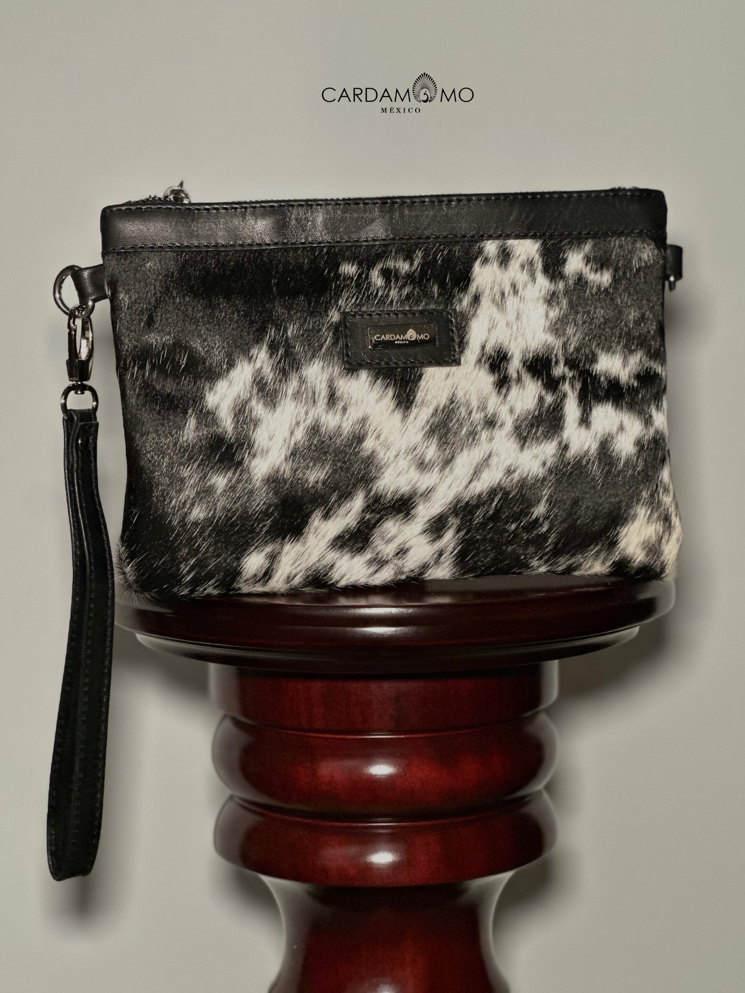 Elaborado en cuero vacuno de alta calidad, conservando el pelo natural de vaca en acabado Cowprint. Este material no solo aporta un diseño único e irrepetible en cada pieza, sino que también garantiza resistencia, durabilidad y un estilo sofisticado con esencia vaquera.