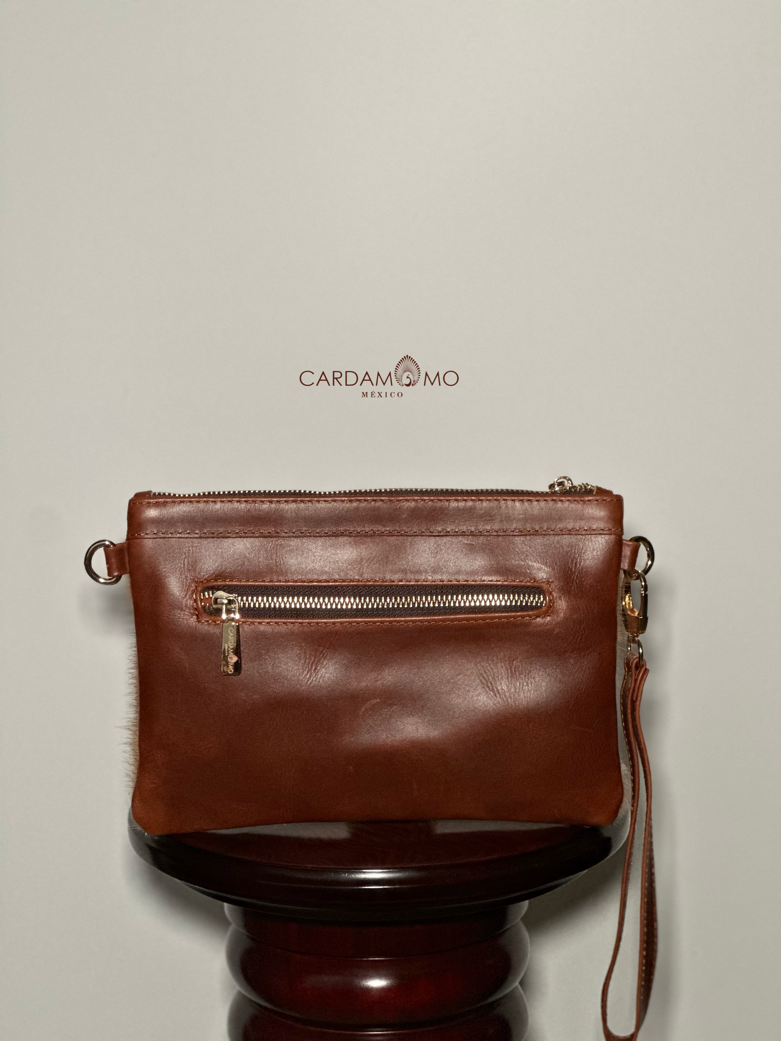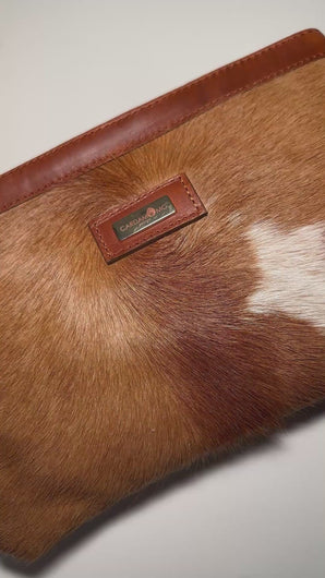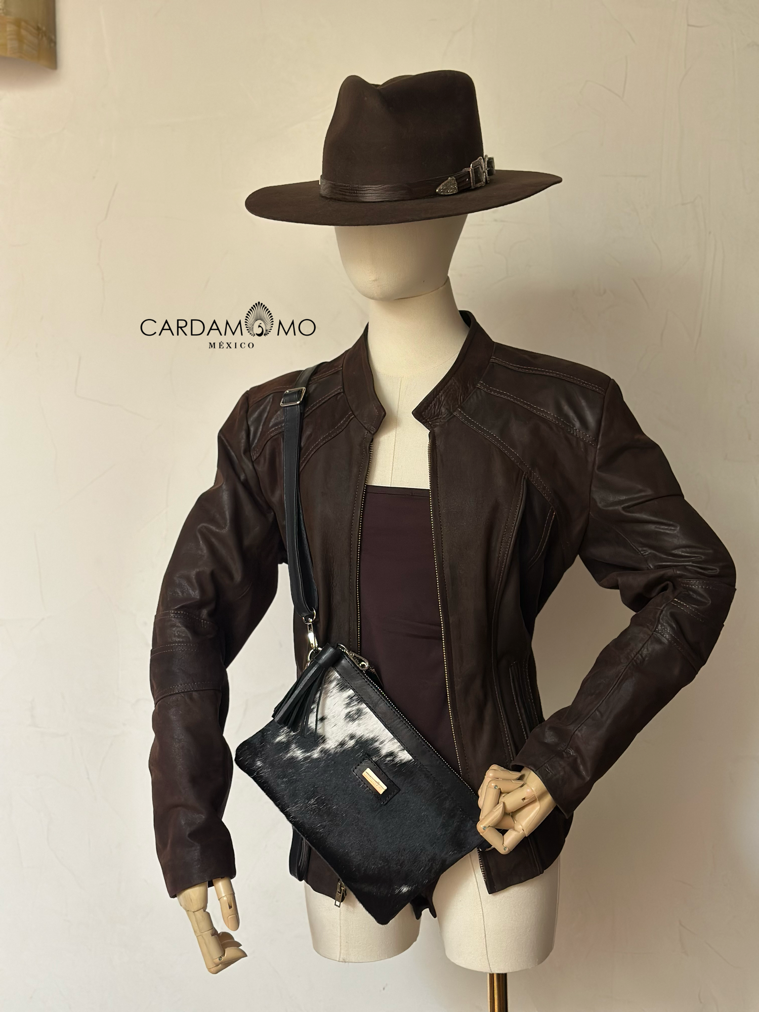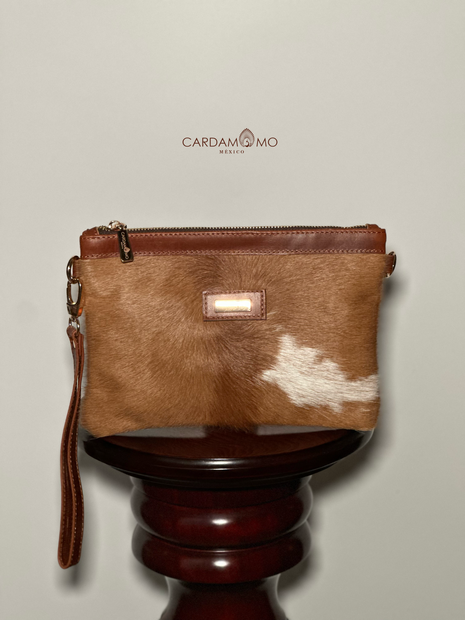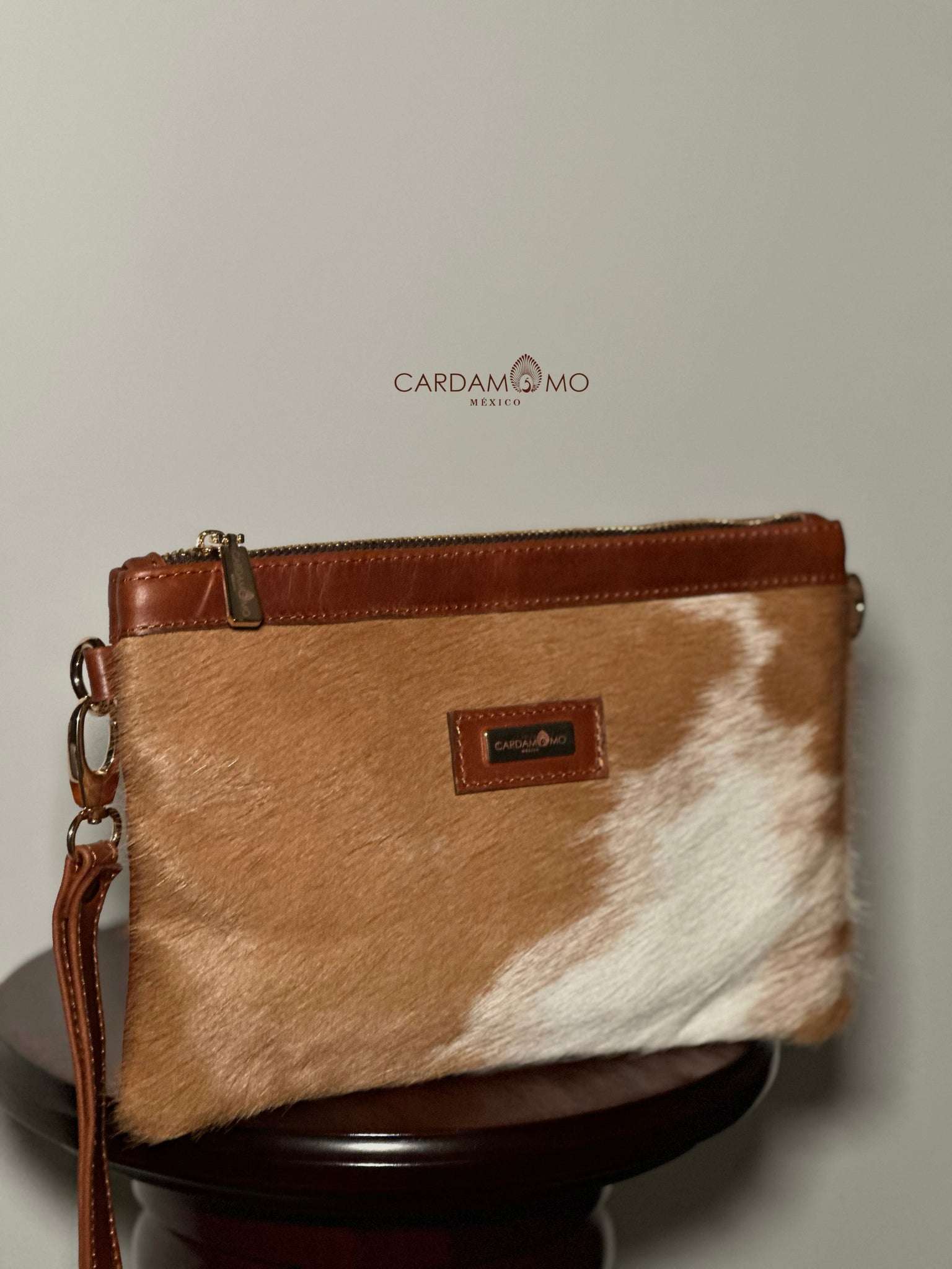Elaborado en cuero vacuno de alta calidad, conservando el pelo natural de vaca en acabado Cowprint. Este material no solo aporta un diseño único e irrepetible en cada pieza, sino que también garantiza resistencia, durabilidad y un estilo sofisticado con esencia vaquera.