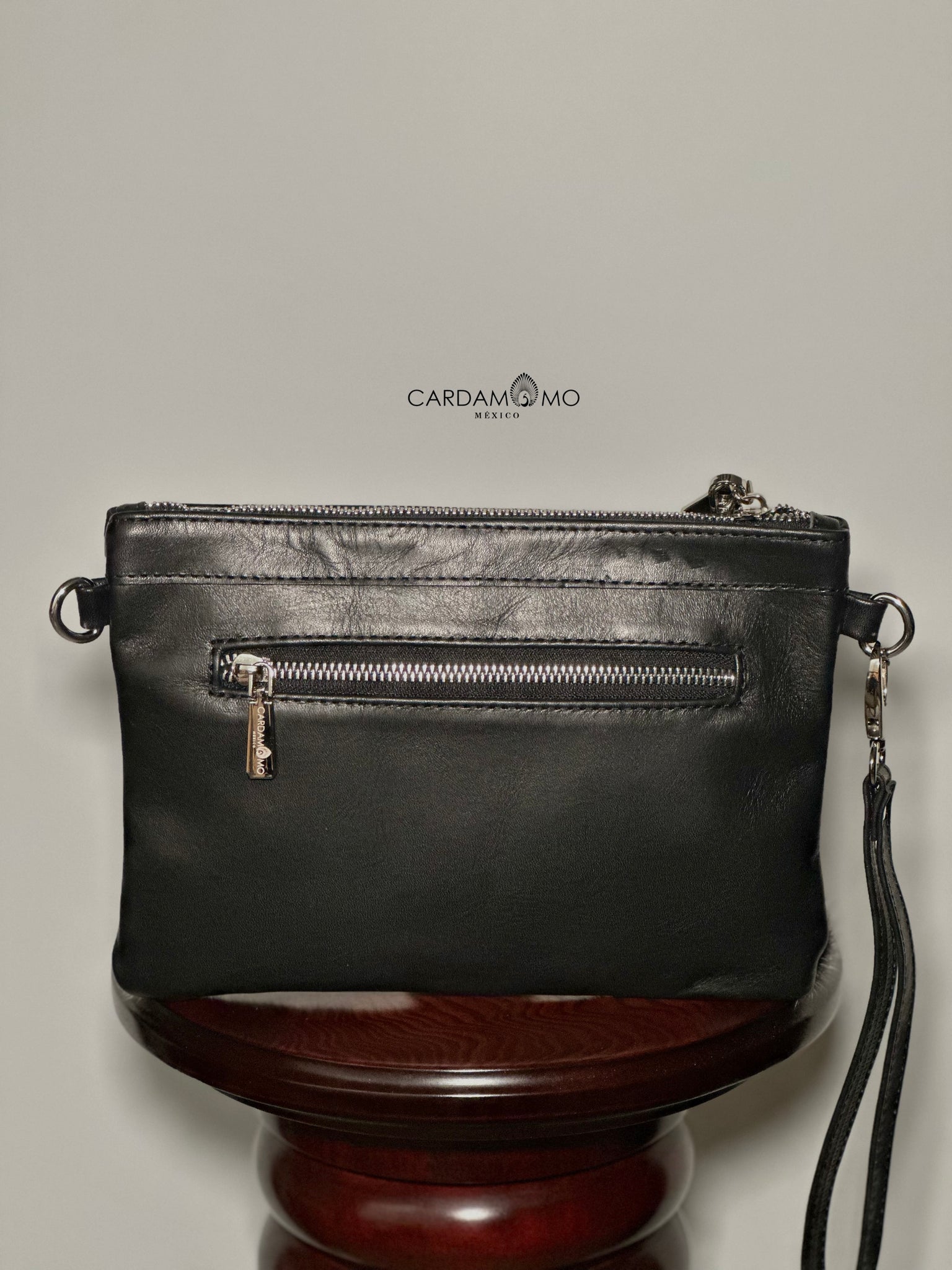 Base estructural de piel 100% vacuno curtido, libre de acabados sintéticos, que ofrece firmeza y mantiene la silueta del bolso con el paso del tiempo.