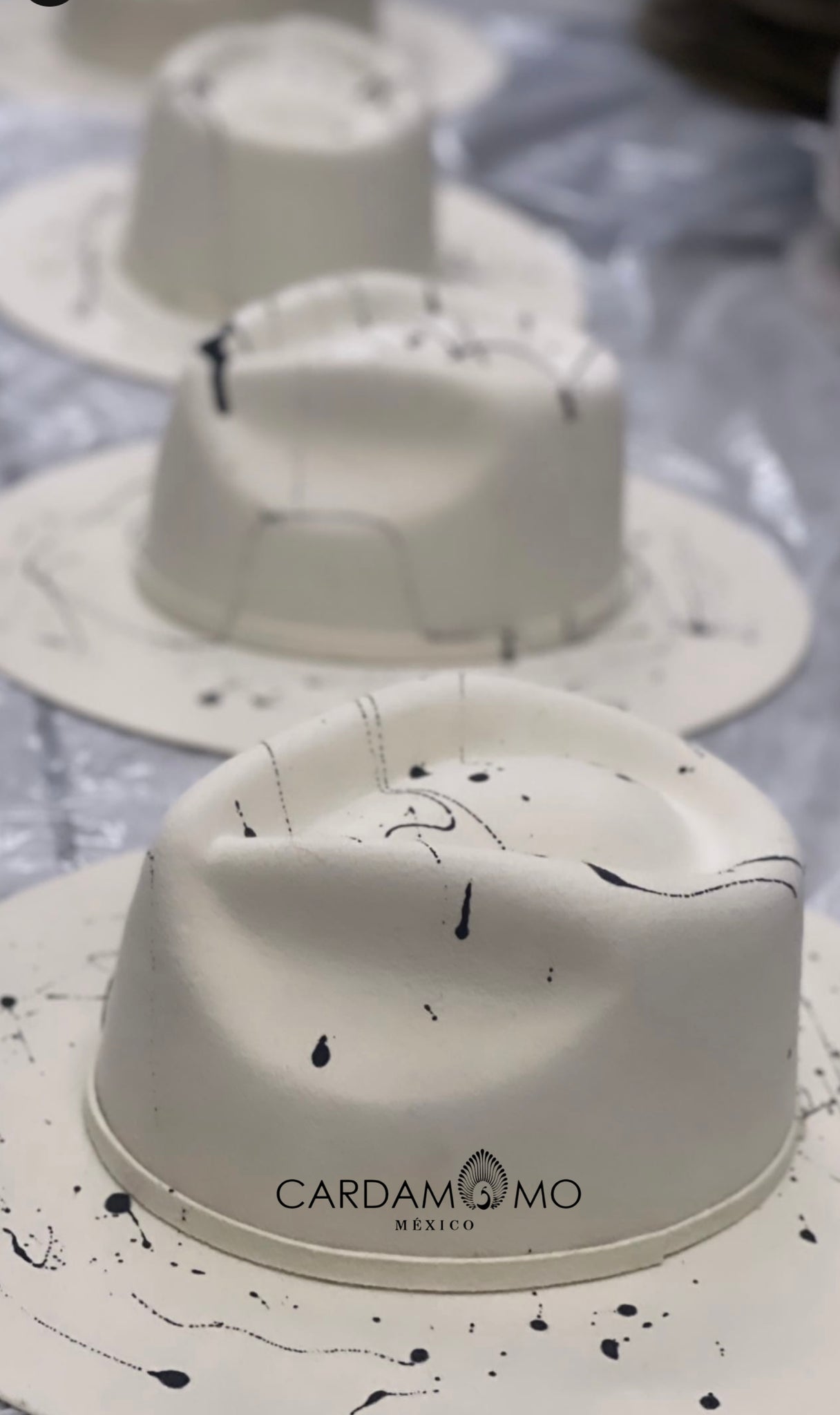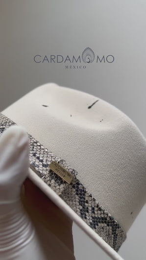 Material: Lana tono hueso moteado negro