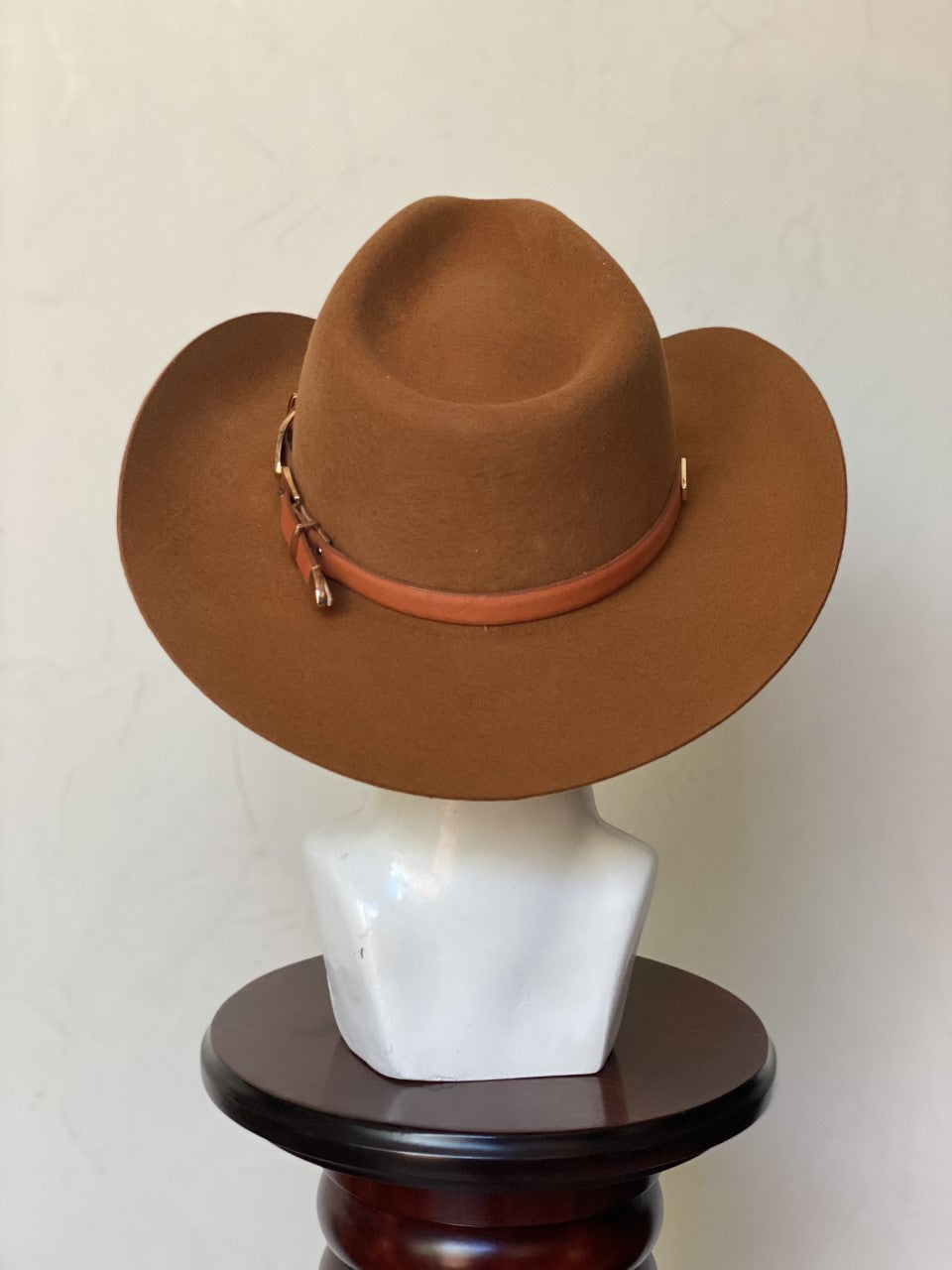Toquilla: Cinto 100% piel en tono marrón con herrajes en punta acabado oro