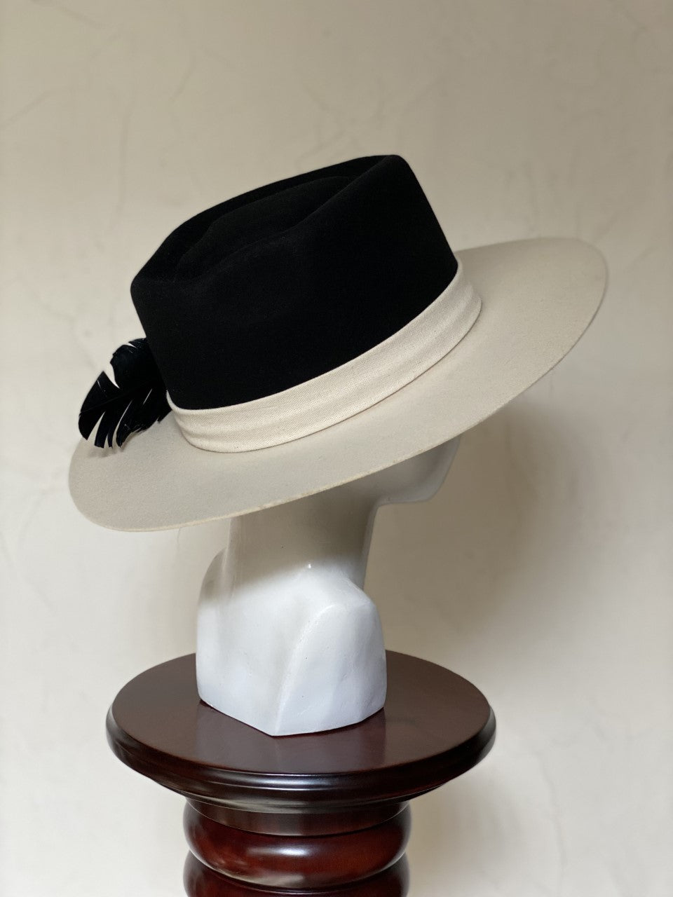 Material: Lana BICOLOR COPA NEGRA Y FALDA HUESO o COPA HUESO Y FALDA NEGRA ambos con pluma (removible)